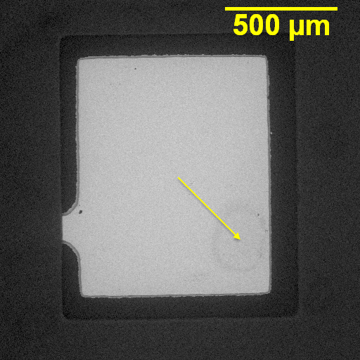 This image shows what appears to be a “water spot” on an ENIG pad.
